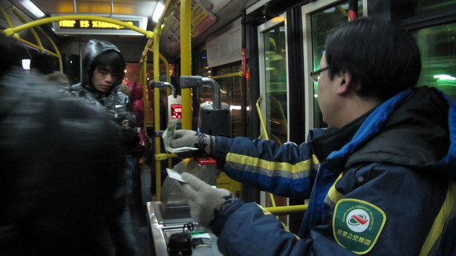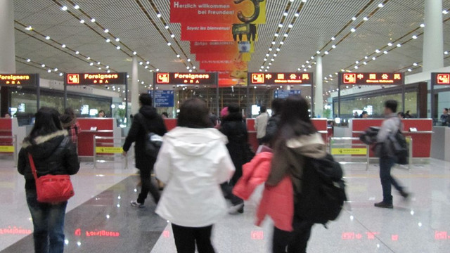 某一管理隊伍秩序人員說:每個口都可以,把你們的台胞證拿出來....